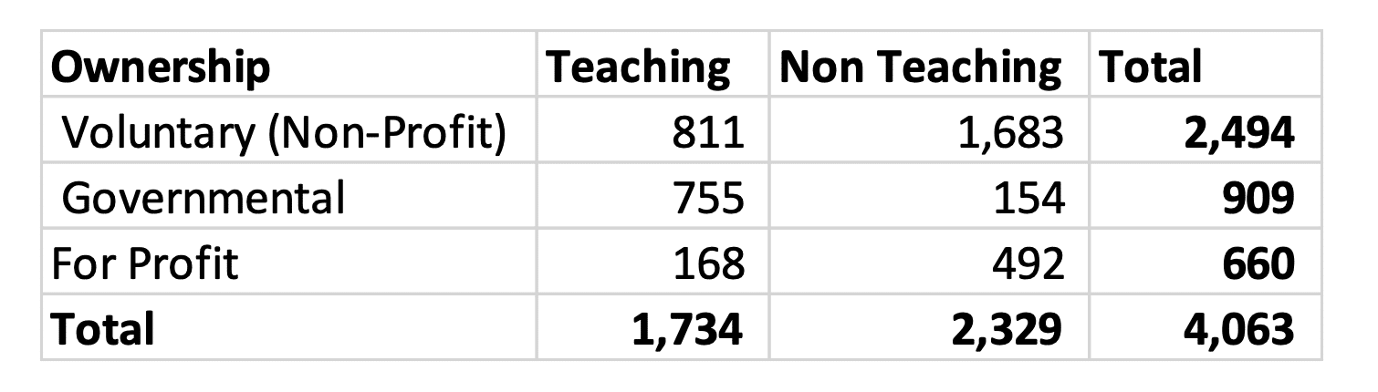 We expanded the study to include 4,063 hospitals that had data for in all 4 years, 2019 to 2022. The composition of our study hospitals is presented below.
