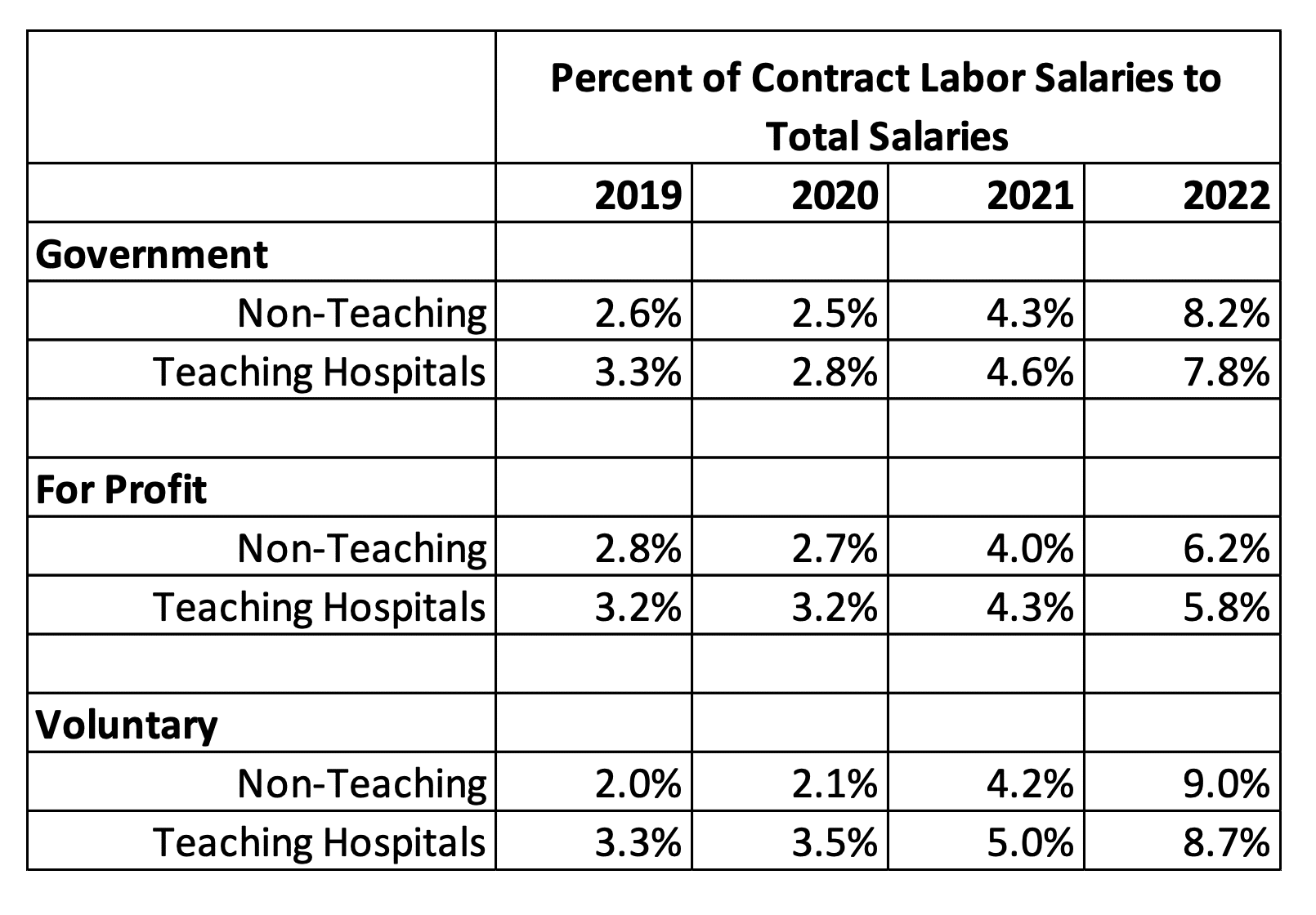 The American Hospital Association in March 2023 reported the results of a recent study on contract labor in hospitals.