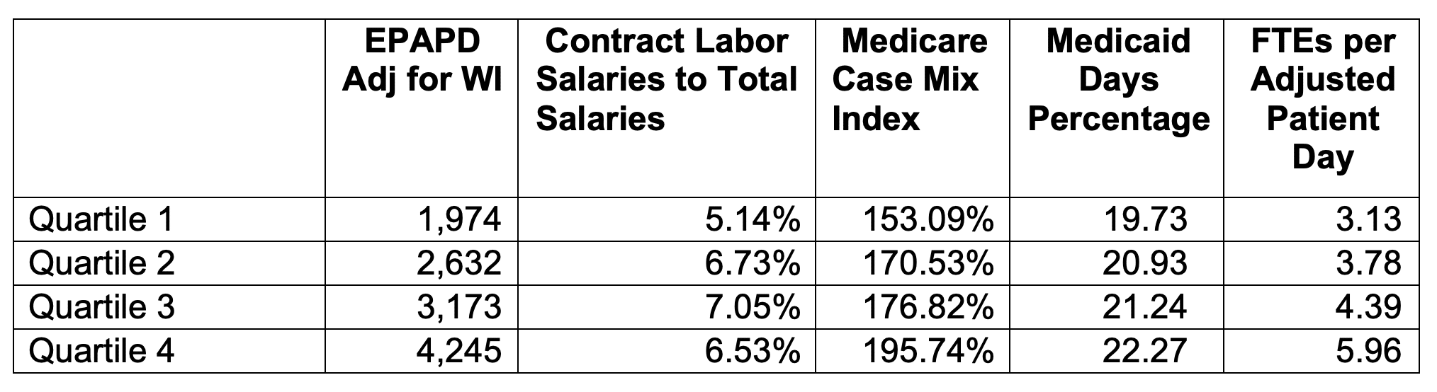 Table 6: Average Values by Quartile for Expense Per Adjusted Patient Day Wage Index Adjusted